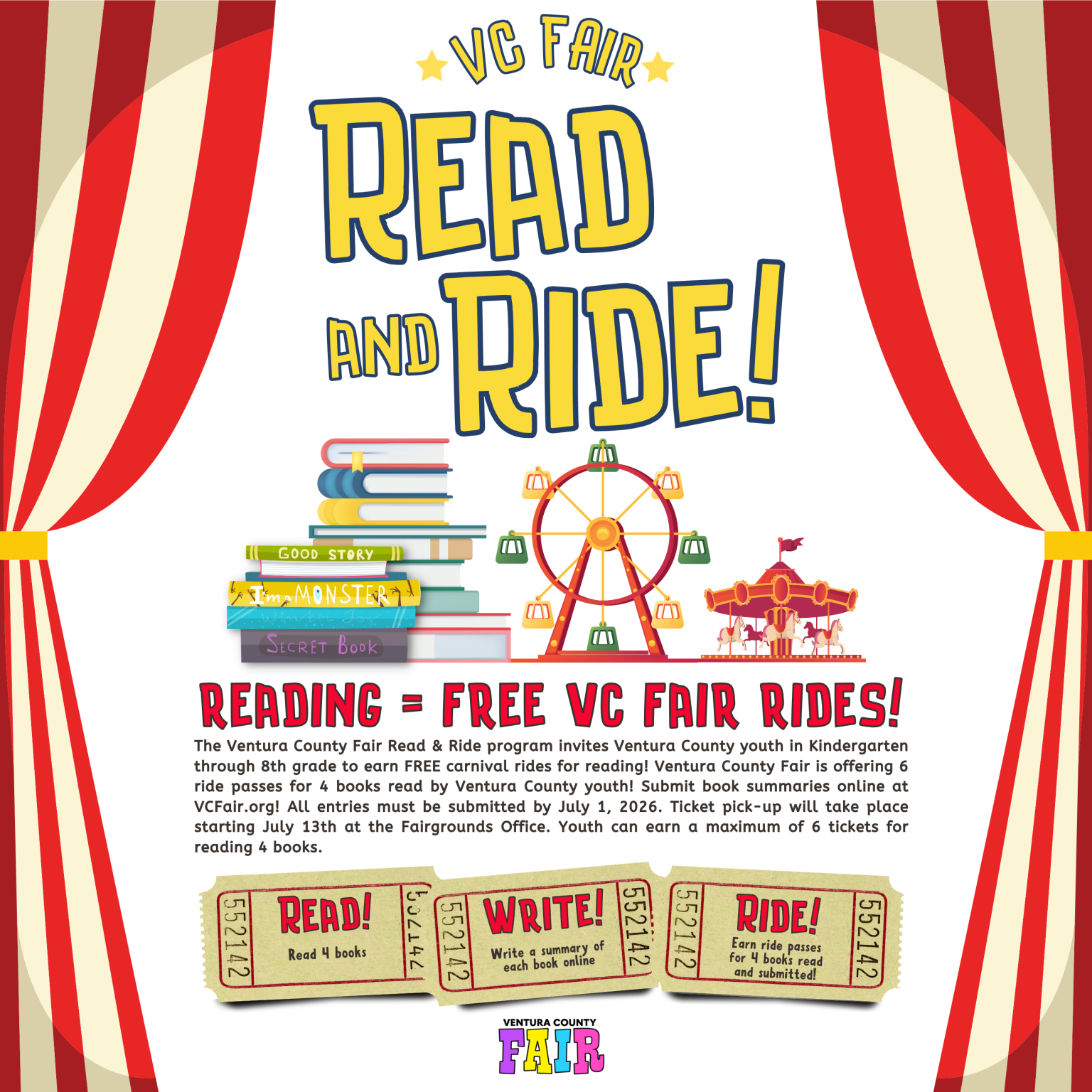 una clase entera o un grupo de estudiantes, envíe un correo electrónico: readandride@venturacountyfair.org.